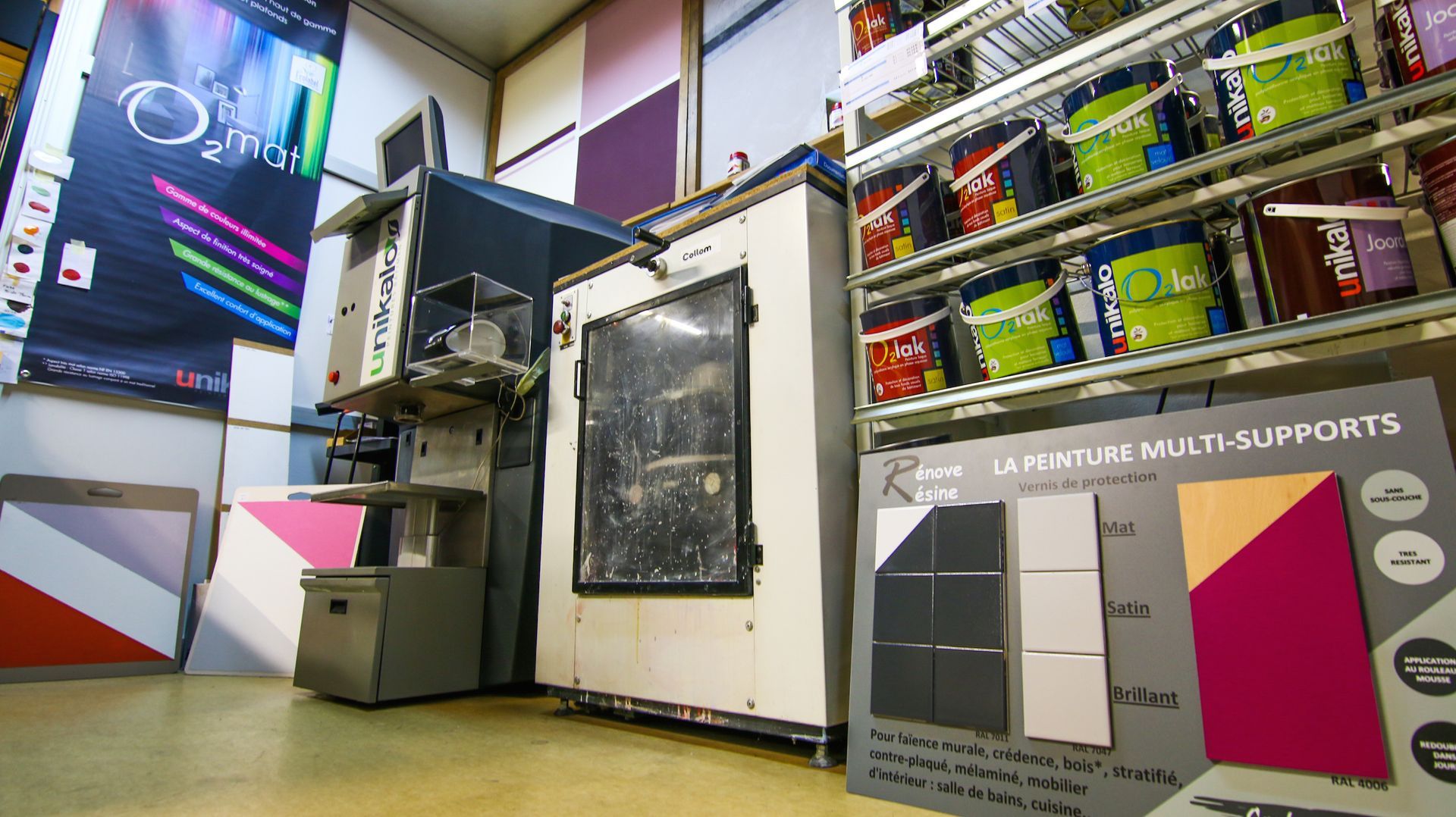 Vous voulez une couleur spécifique ? Nous possédons sur place une machine à teinter qui vous permet de choisir la teinte exacte de votre peinture.